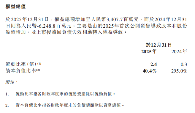 除了盈利层面的突破,极智嘉的资本结构也迎来优化。受益于港交所成功上市,首次公开发售带来的股本及股份溢价增加,赎回负债自动转入权益,公司年末权益总额跃升至34.077亿元,资本负债率大幅优化40.4%,财务结构得到彻底净化,为下一阶段的全球扩张奠定了坚实的资产基础。