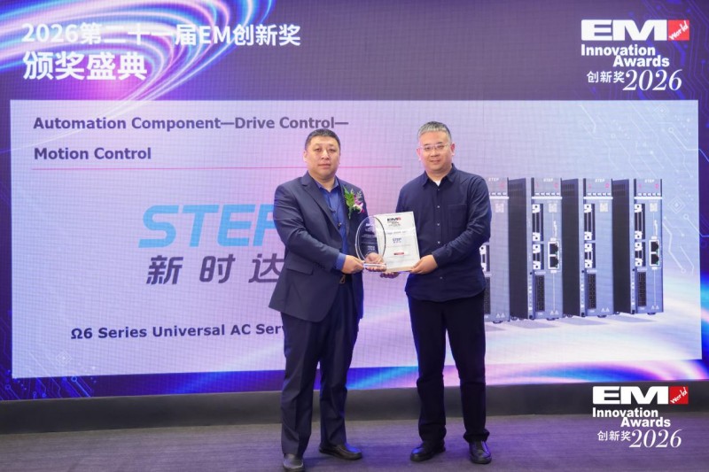 展会期间,其自主研发的Ω6-C系列通用型交流伺服凭借3.2kHz速度环响应带宽、微米级总线通信、先进控制算法及32bit超高分辨率编码器,斩获电子制造领域权威奖项——EM创新奖。该产品已规模化