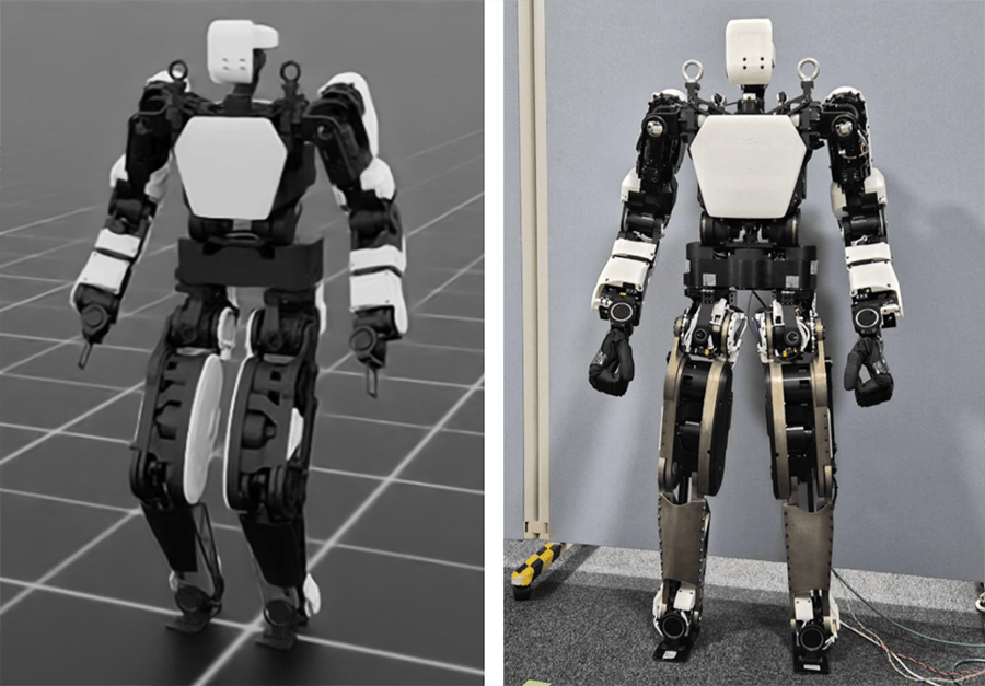 森田光典坦言,仿真和现实之间存在一道很难跨越的鸿沟:同样的控制指令,虚拟里流畅自然,真机上却会抖动、拖脚,甚至突然失稳。这也是行业普遍头疼的 “仿真-现实差距”。