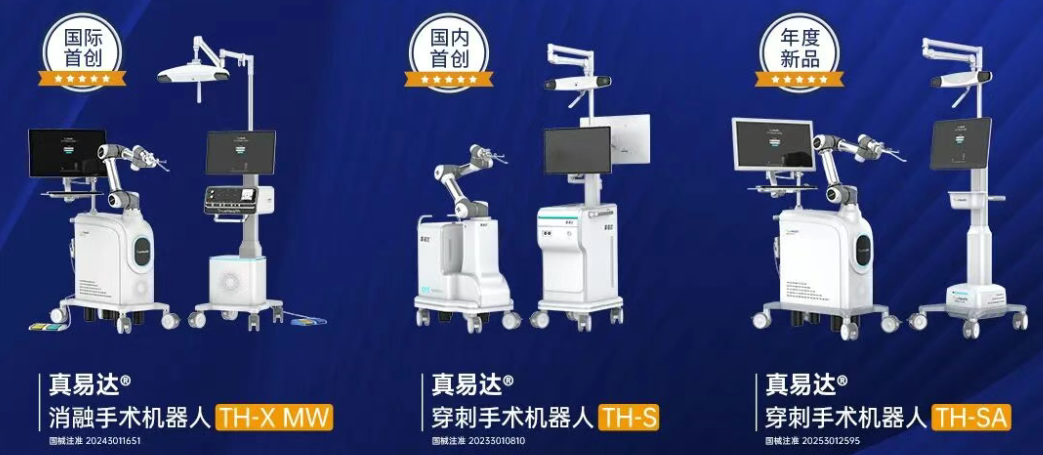 核心产品包括:国际首创真易达®消融手术机器人TH-X MW、国内首创真易达®穿刺手术机器人TH-S,以及年度新品真易达®穿刺手术机器人TH-SA,三款产品均获 NMPA 三类证。