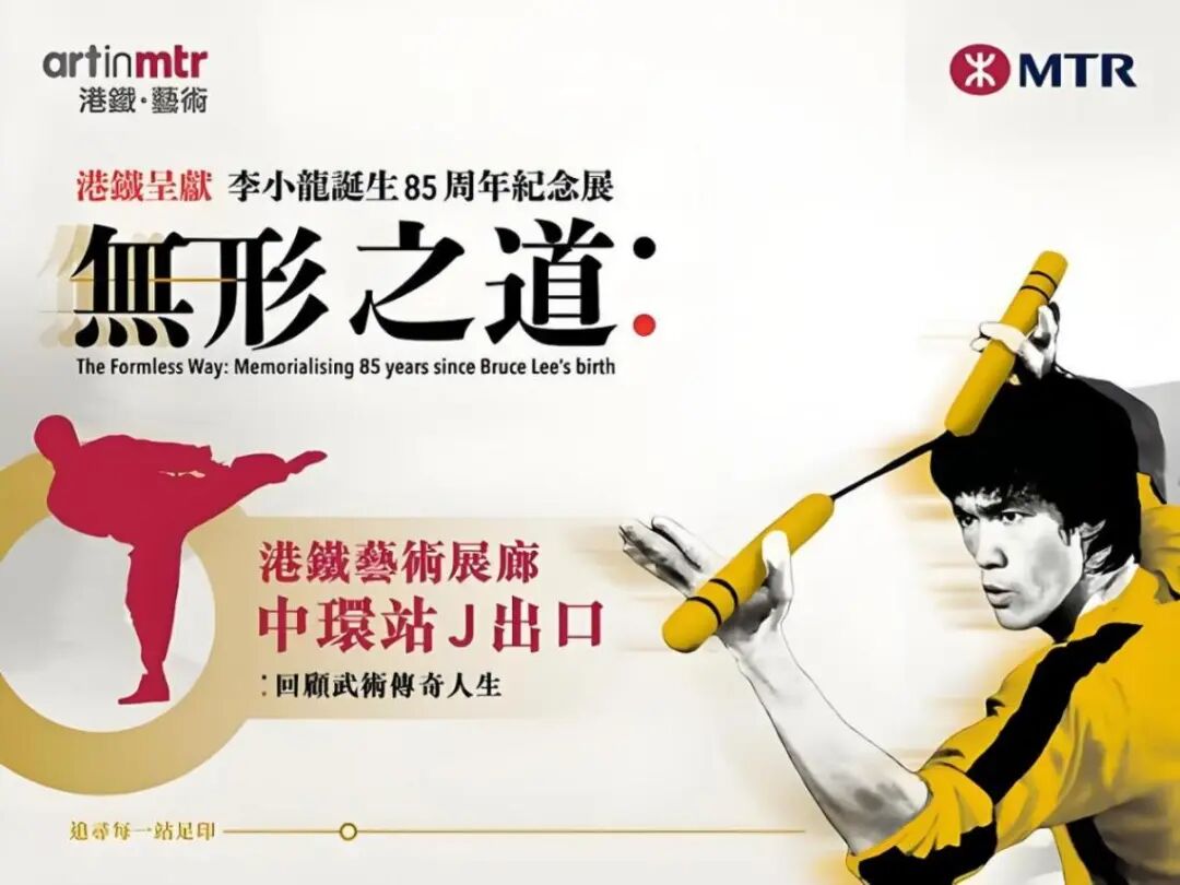2025年底我赴香港出差期间,恰逢港铁公司携手李小龙基金会、香港文化博物馆举办《李小龙诞生85周年纪念展》。展览以“无形之道”为主题,地点就设在在中环地铁站,在地铁走廊和服务空间设置展陈,通过影像、手稿与实物展品,全方位呈现这位跨界传奇在电影、武术与哲学领域的非凡成就。不得不说,这种把车站变成开放公共艺术空间的展览形式,可以让大众免费、顺路、随时参观,让日常出行增加了文化体验,实现了很好的传播效果。