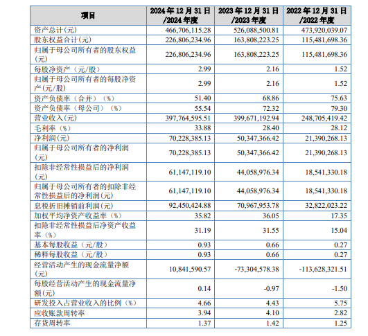 财务数据方面,奥图股份近年来整体保持稳健发展态势,2022年至2024年,该公司营业收入分别为24870.54万元、39967.12万元和39776.46万元,净利润分别为2139.03万元、5034.74万元和7022.84万元,扣非归母净利润分别为1854.13万元、4405.90万元和6114.71万元,整体盈利水平稳步提升。