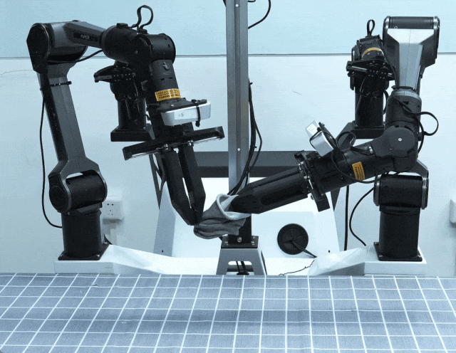 在机器人控制任务中,抓取硬质零件通常依靠的是三维坐标体系,但这套逻辑在「翻袜子」面前会瞬间失效。作为一个柔性物体操作场景,它的核心难点在于无规律形变。在翻转的每一帧,袜子的物理形态都在发生改变。机器人必须实时跟踪动态形变,精准区分出袜子的内外侧和开口位置。这意味着模型必须真正理解眼前的这团布料,具备物理规律常识,而不是背诵动作指令。