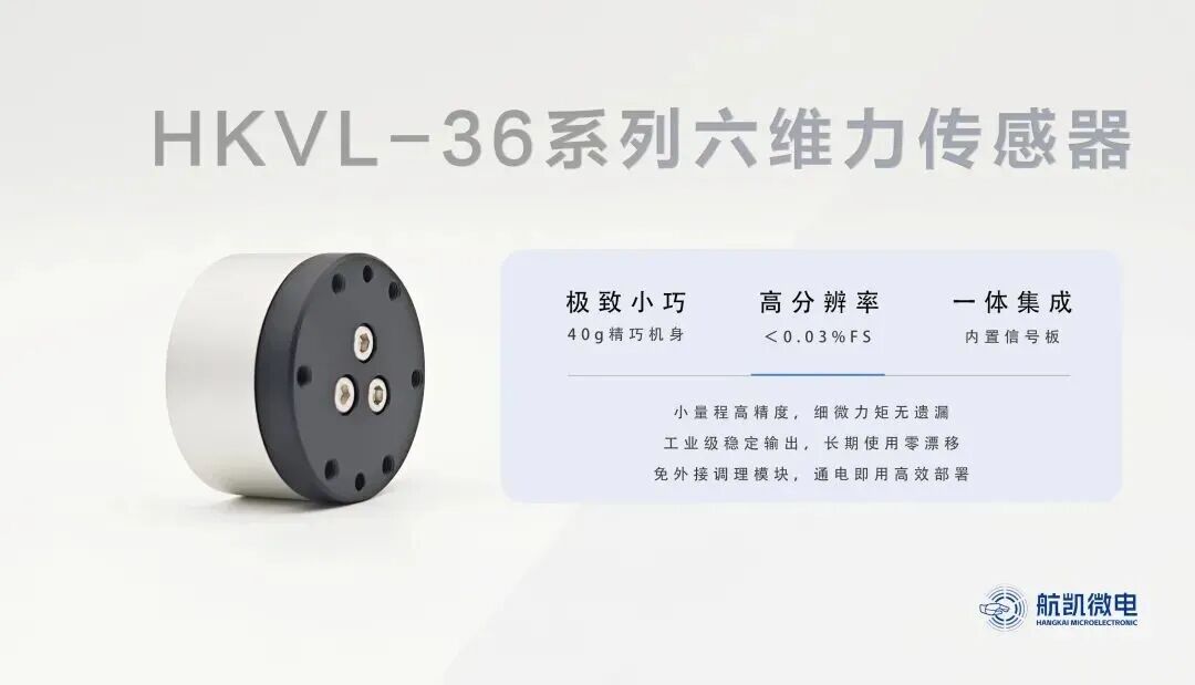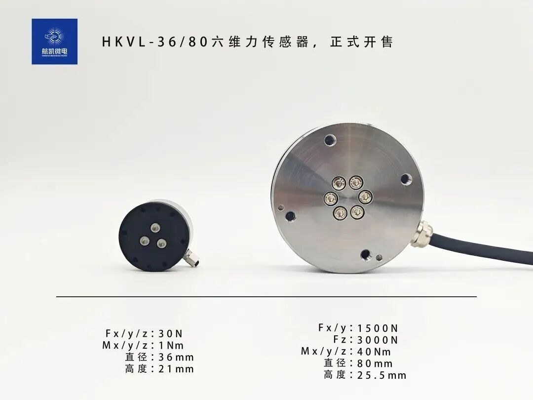 苏州航凯微电子技术有限公司近日正式发布了两款六维力传感器新品,型号分别为 HKVL-36与 HKVL-80。两款产品在尺寸、量程与功能设计上形成明确互补,分别面向精密装配、狭小空间力控,以及工业重载、高可靠性应用场景。