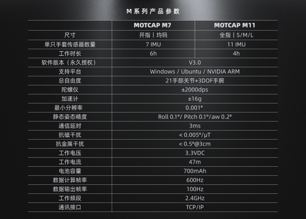 M11手势识别数据手套参数
