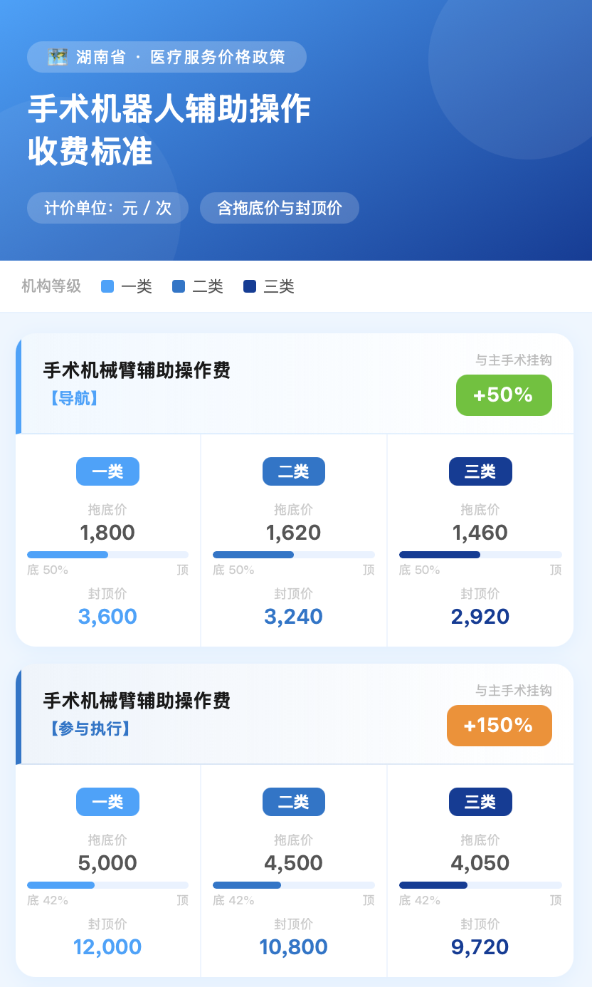 全国首落!湖南手术机器人三档定价公示:精准执行封顶2.6万,旧文件同步废止