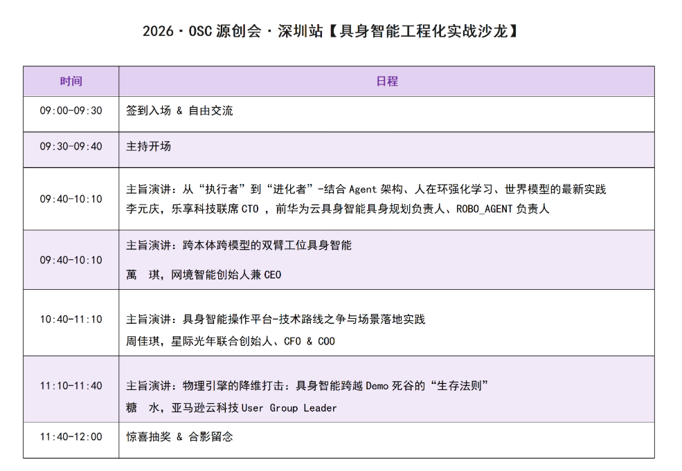 20 2026·OSC源创会·深圳站【具身智能工程化实战沙龙】