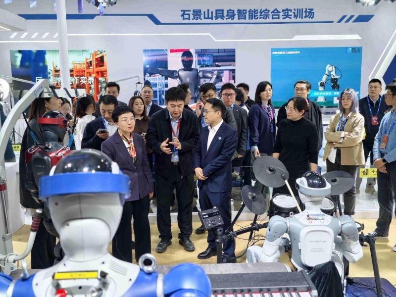 在论坛之外,机器人乐队作为灵宝CASBOT多机协同能力的重要呈现形式,也继续出现在更多公开活动现场。3月27日至29日,在2026北京国际科幻与未来产业博览会上,灵宝CASBOT机器人乐队再次亮相表演,吸引众多观众驻足围观。活动期间,石景山区委副书记万隆、区委常委李文化莅临灵宝CASBOT展位参观并指导工作。