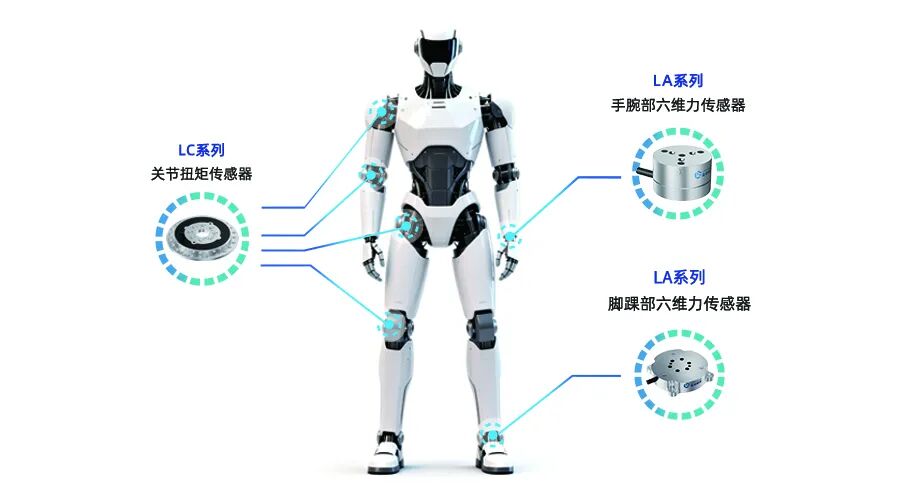 核心应用于手腕、脚踝等关键部位,支撑精细装配、动态行走与安全交互,已成为智元、小米、优必选等头部企业标配。LC系列关节扭矩传感器采用紧凑轻量设计,可无缝集成于机器人关节,综合精度0.1% FS,具备5倍过载能力,实时提供力矩反馈,保障柔顺运动与碰撞保护。