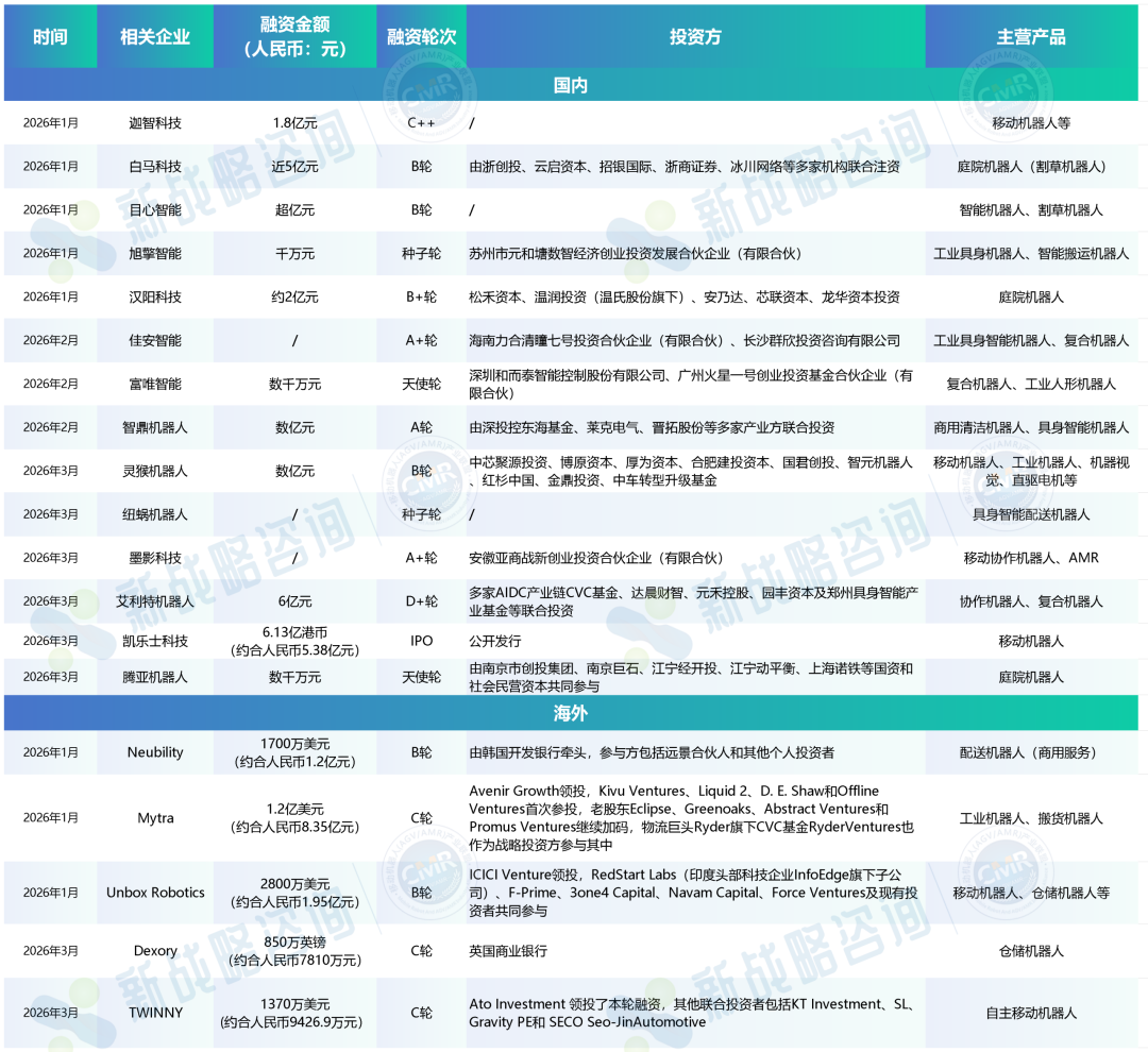 近20起,超40亿!2026年Q1全球移动机器人行业融资一览
