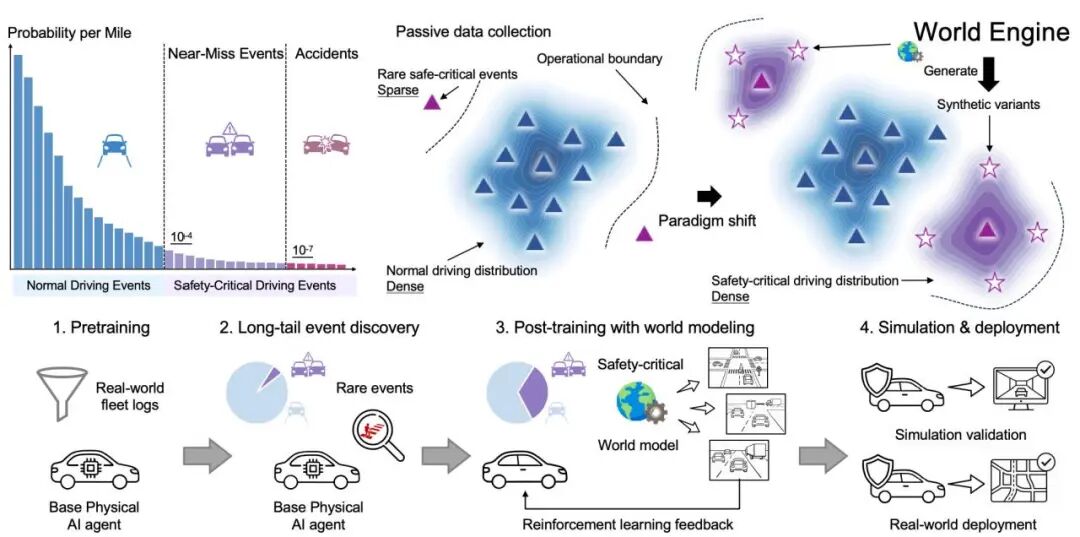 三者协同,构成了一个完整的飞轮:仿真生成难例,难例驱动后训练,后训练强化决策能力。