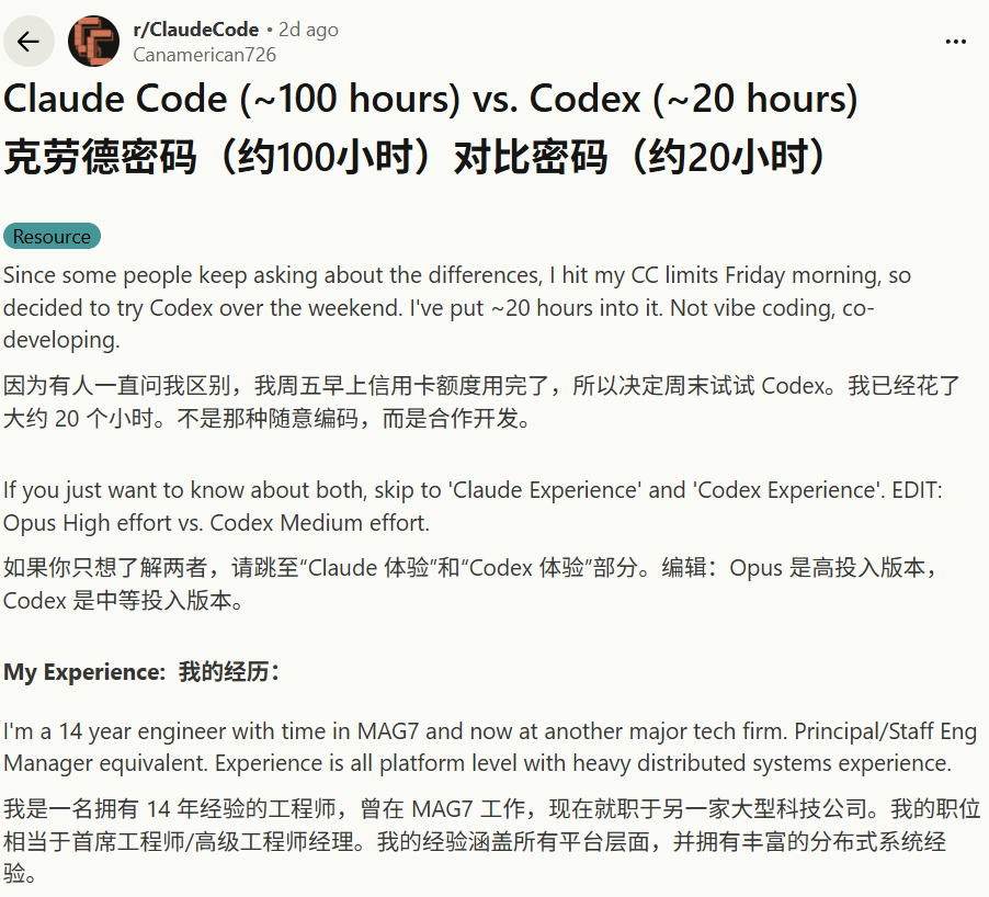 前两天,在 r/ClaudeCode 社区,一位拥有 14 年经验、曾在科技巨头工作的高级工程师 u/Canamerican726 分享了一份极其硬核的测评。