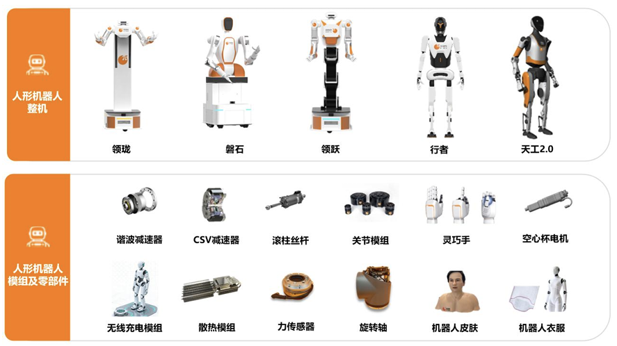 去年6月,领益智造正式发布了覆盖工业、商业、服务场景的机器人家族9款产品,包括轮式和双足形态,人形产品大多搭载了其研发的减速器、七轴仿生臂、关节模组等零部件。