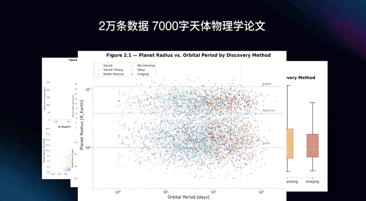 Agent 集群将一篇高密度视觉数据的天体物理论文拆解复用,生成了约 7000 字研究报告、2 万条数据集和 14 张图表。