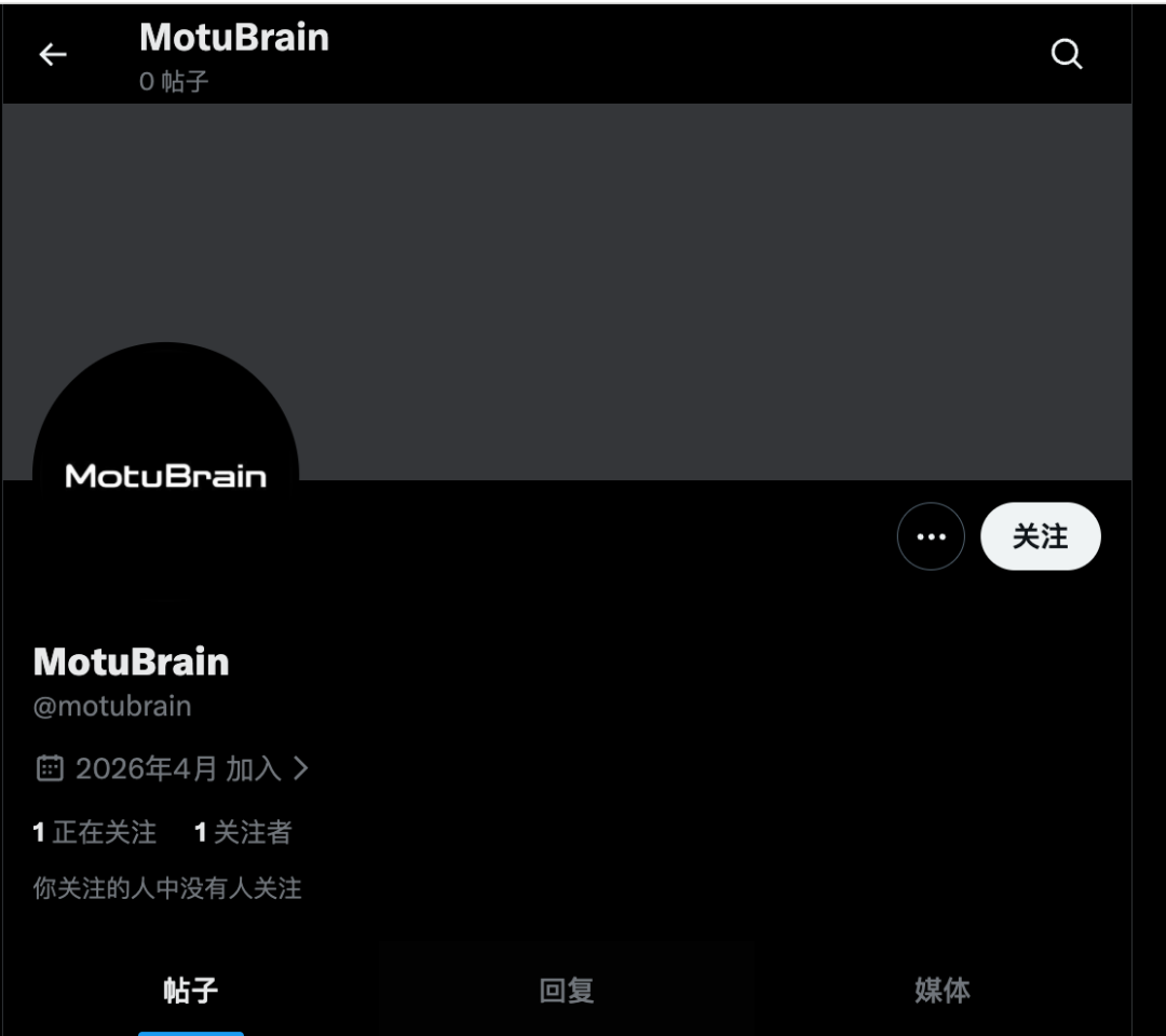 简单搜索了一下,目前网上还未找到任何有关 MotuBrain 的信息,不过我们发现了这个本月刚刚注册的 X 账号。