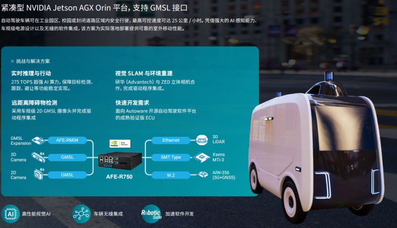 nAP 涂层、MIL-STD-810G 认证,适配严苛工业环境;基于 NVIDIA Jetson Thor 等平台打造一体化核心平台,算力可达 2070 TFLOPS,原生支持 GMSL 相机、多传感器融合,将人形机器人开发周期从数月缩短至数周。同时,研华解决方案已落地工厂仓储搬运、防爆四足机器人、户外作业机器人等场景,凭借类人精准操作、动态环境适应能力,解决工业场景劳动力短缺问题。