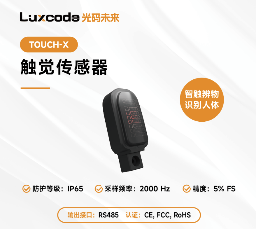 基于光电融合技术,以可普及的成本和工业级稳定性为双目标,光码未来正式推出TOUCH-X触觉传感器,通过革命性的低成本光学方案以及2000Hz超高频采样、光电原理抗干扰、人体识别三大核心优势,为正在爆发的具身智能产业,提供一款真正“用得住、测得准、可部署”的感知产品。