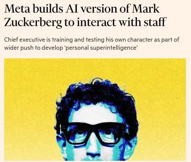 当然,AI 转型声量最大的还是 Meta,该公司内部一直在积极鼓励员工利用 AI 智能体来辅助编程及其他各项工作,即便在短期内这可能会在一定程度上降低工作效率。上周《金融时报》甚至报道说,扎克伯格正在训练自己形象的智能体来代替自己开会。