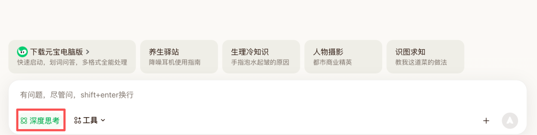 我们可以看到,腾讯混元大模型和其他家模型一样区分了模式:快速思考可以更快给出答案,深度思考可以让元宝思考更充分,回答更优质。当然我们这里全都选上深度思考。