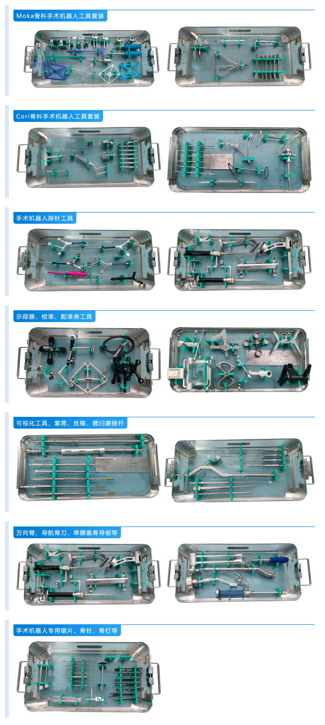 良医医疗的展台是这一变化的注脚之一。这家2020 年成立、专注骨科手术机器人器械设计与精密制造的企业,携旗下控股公司爱匠医疗,带来了骨科创新手术工具、手术机器人工具、骨科手术机器人动力系统、手术动力系统四大核心产品线,也带来了这个上游细分赛道一个值得观察的样本。这是良医此次CMEF 展示中最具看点的一条产品线。依托智能化设计,良医的手术机器人工具覆盖示踪器、校准/配准工具、可视化工具、套筒、丝锥、髋臼磨锉杆、万向臂、导航骨刀、单髁截骨导板,以及手术机器人专用锯片、骨针、骨钉等完整品类,并推出了Moka 骨科手术机器人工具套装和Cori 骨科手术机器人工具套装两个拳头产品,对应Stryker Mako 和 Smith & Nephew Cori 两大国际主流骨科手术机器人平台的配套工具开发。这一产品线的意义不在单件工具,而在"完整性"——从末端执行工具到精密配件的跨度,对应的是整机厂"一台手术机器人从装机到使用全流程的非整机部件需求"。良医的切入策略不是单点突破,而是全品类覆盖。产品采用医用级不锈钢或合金材质,一次性与重复消毒双模式可选,这也是针对不同临床场景与医院成本模型的现实适配。2. 骨科手术机器人动力系统——参数层面的高端对标动力系统是四大产品线中技术门槛最高、最值得放大的一块。爱匠医疗带来的骨科手术机器人动力系统,作为手术机器人的核心动力单元,搭载医用级无刷电机,闭环恒速控制确保负载波动<±2%,扭矩输出稳定且响应速度<0.01 秒,内置多重安全防护机制,低震低噪设计减少组织损伤。负载波动<±2%:意味着机械臂在面对不同骨质密度(皮质骨与松质骨差异巨大)时,截骨面的切削质量可以保持相对一致,这对关节置换中截骨平面的平整度有直接影响响应速度<0.01 秒:意味着当机械臂接收到急停指令时,动力输出可同步切断,这是手术机器人安全裕度的重要组成部分长期以来,骨科手术机器人的动力系统被国外头部企业主导。国内企业在传统手持式骨动力领域有所积累,但"机械臂驱动式动力系统"是一个相对独立的新赛道,国产化窗口才刚刚打开。从披露参数看,爱匠医疗的这套动力系统达到了行业主流水平,是目前国产阵营中少数明确面向手术机器人配套开发的动力产品之一。骨科基础手术工具是良医的"底盘业务",也是其临床资源最集中的一块。这一产品线联袂国内顶尖关节外科团队联合开发,推出:- DAA-FCL 手术器械九件套(直接前入路全髋置换)