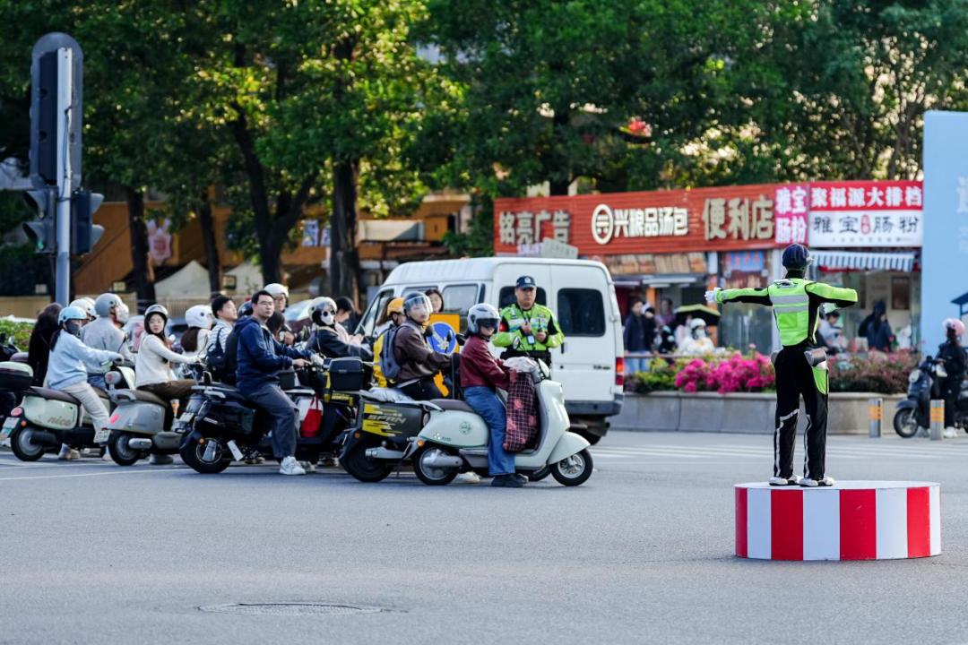 这不是在描述一个技术功能,而是在描述一种社会心理机制:人形机器人通过可识别的类人存在,作为规则认知的协同节点,与行人、环境及既有系统形成良性互动,温和而有效地支持公众对交通规范的自觉接纳与行为约束。