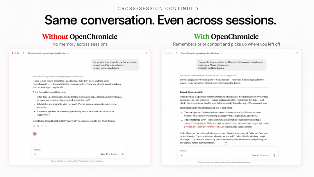 Chronicle 和 OpenChronicle,其实是两种很典型的选择:一种,是把「记忆」做成产品能力,放进订阅体系里;另一种,是把「记忆」拆出来,变成所有系统都能用的一层基础设施。