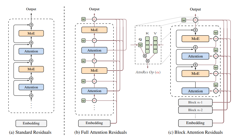 Kimi 提出的 Attention Residuals(注意力残差)优化了信息流的传递效率,提升了模型的表现。这一创新得到了广泛的认可,Andrej Karpathy 点评称「我们对《Attention is All You Need》的理解还不够」,OpenAI 推理之父 Jerry Tworek 点评称「我们应该重新思考一切,深度学习的2.0时代正在到来」,马斯克也在社交媒体上为此点赞,称是「令人印象深刻的研究」。