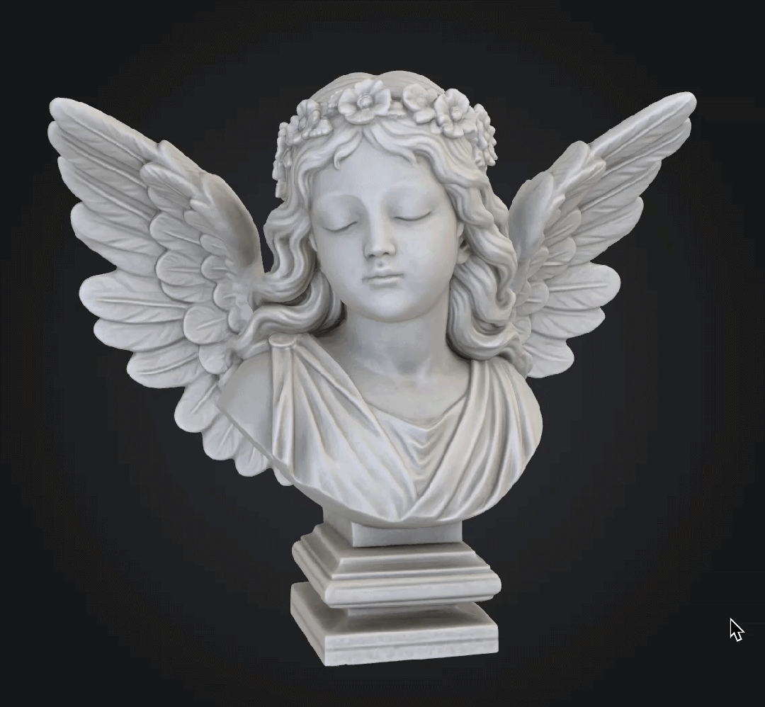 我们用一些雕塑的照片进行了实测,发现 Meshy 6 可以精准还原雕塑的面部表情和细节,而且在面部曲面的细分上做得很到位,没有生硬的棱角。