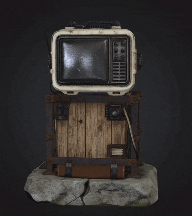 从结果来看,Meshy 6 对这类工业感的东西还原得挺准。就拿下面这台复古电视来说,外壳的转折干净,没有多余的倒角或模糊边缘;支架的金属框和木板拼接得很整齐,每个零件的边缘都很清晰,规整又有力量感。