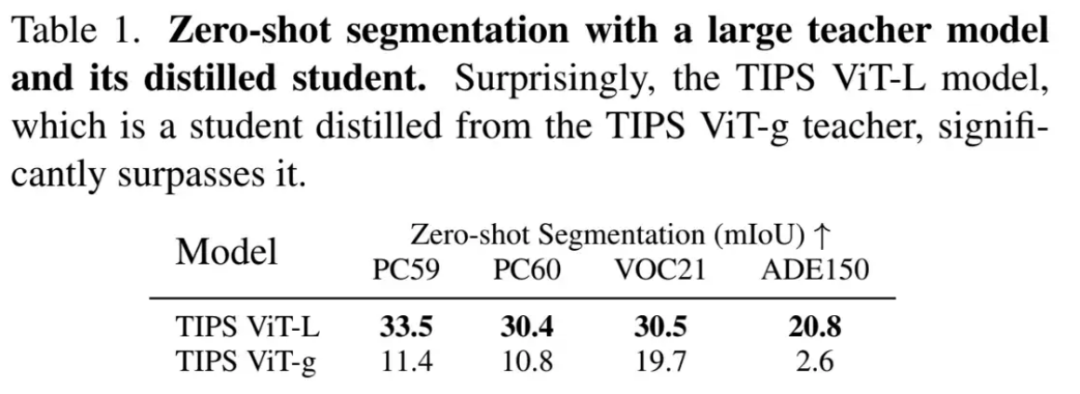 通过 “块级别(Patch-level)” 蒸馏出的小参数学生模型(Student Model),在零样本分割等密集型图文对齐任务上,其表现竟然大幅度反超了规模巨大的教师模型(Teacher Model)!