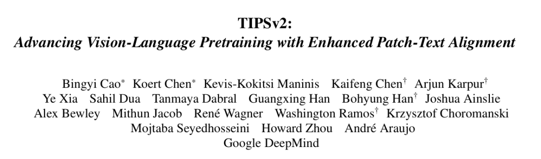 论文标题:TIPSv2: Advancing Vision-Language Pretraining with Enhanced Patch-Text Alignment