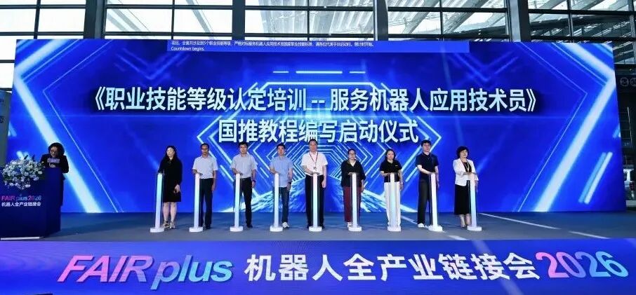 4月22日,在FAIR plus2026机器人全产业链接会FIRST大会主论坛上,备受行业关注的《职业技能等级认定培训教程 —— 服务机器人应用技术员》 编写启动仪式隆重举行。该教程受中国就业培训技术指导中心委托,中国劳动社会保障出版社有限公司、深圳市机器人协会共同承接,是服务机器人领域职业技能等级认定培训校推教程建设的重点项目。