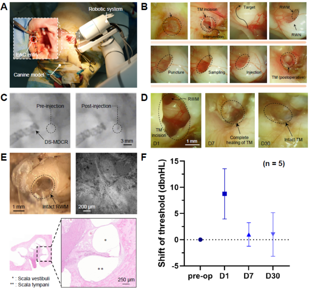 犬模型体内实验:经耳道低损伤机器人采样与注射技术(TARGET)