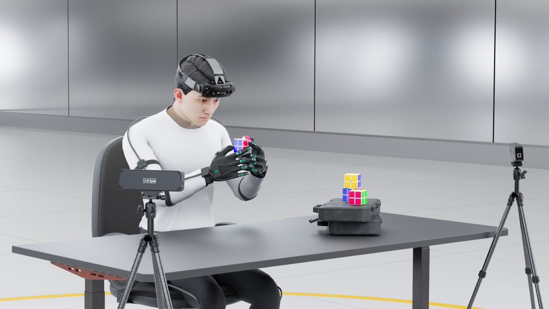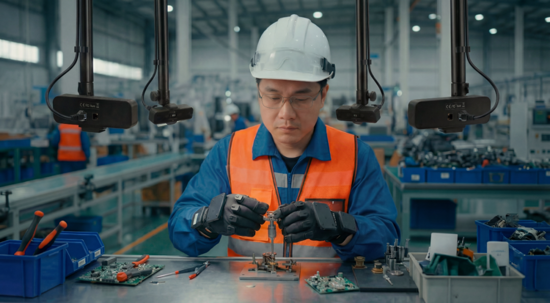 Project Decode给出的答案直接且硬核,即将高精度采集系统轻量化、场景化,推向真实的生产与生活一线。其提出了“真实场景伴随式采集”这一新模式。这并非在实验室中模拟一条产线,而是将轻至105克的光惯融合手套PulseH、即插即用的Pulse3 四目动捕相机带入真正的工厂车间。