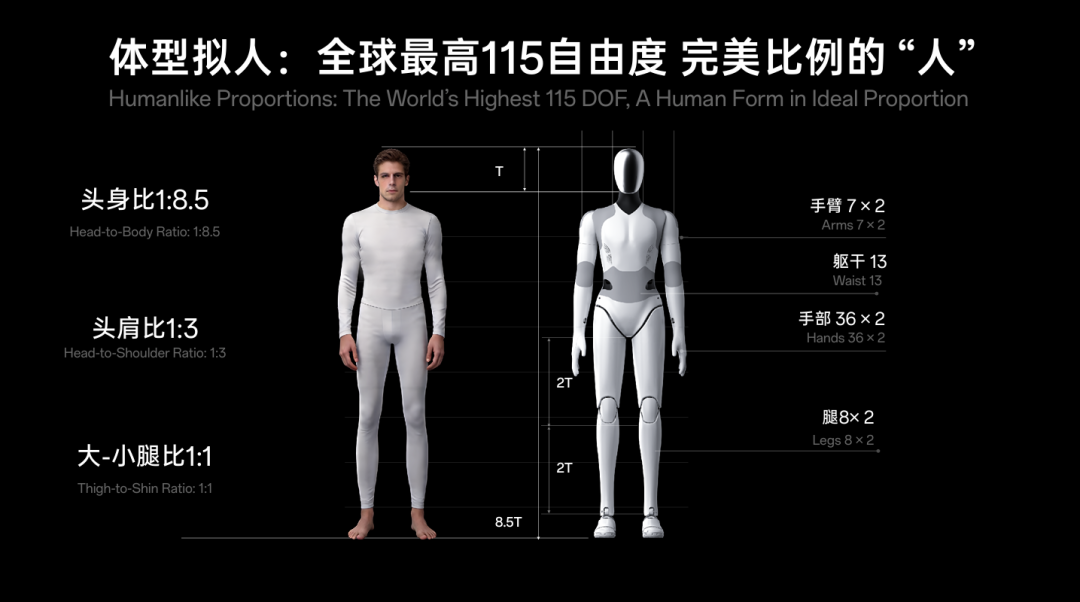 体格:115 个自由度,极限复刻人类运动空间