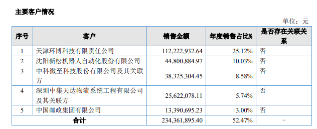 而在2024年,新松机器人曾是其第二大客户,当年销售金额为4480.09万元,占年度销售总额的10.03%。中国邮政亦是其主要客户之一。