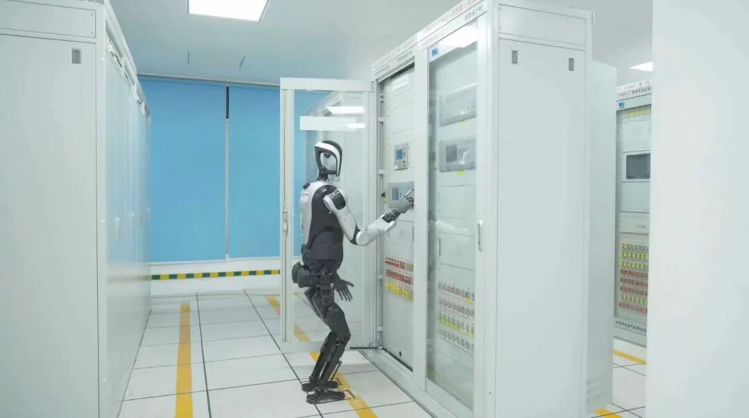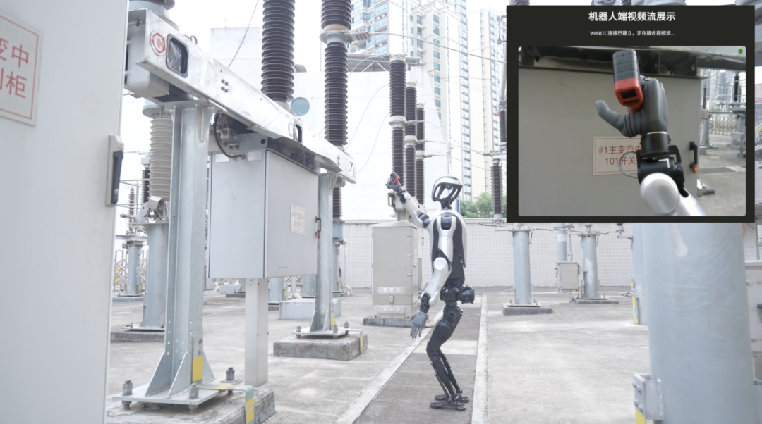 精准检测与操作:基于本地部署的视觉大模型(VLM),机器人可识别10余种异常情况,并秒级上报至后台监控。更重要的是,全尺寸人形机器人凭借类人的形态与双臂操作能力,能够执行高身位、精细化的作业任务——捡拾异物、检测高温高压设备、拉合电闸、操作控制面板等。
