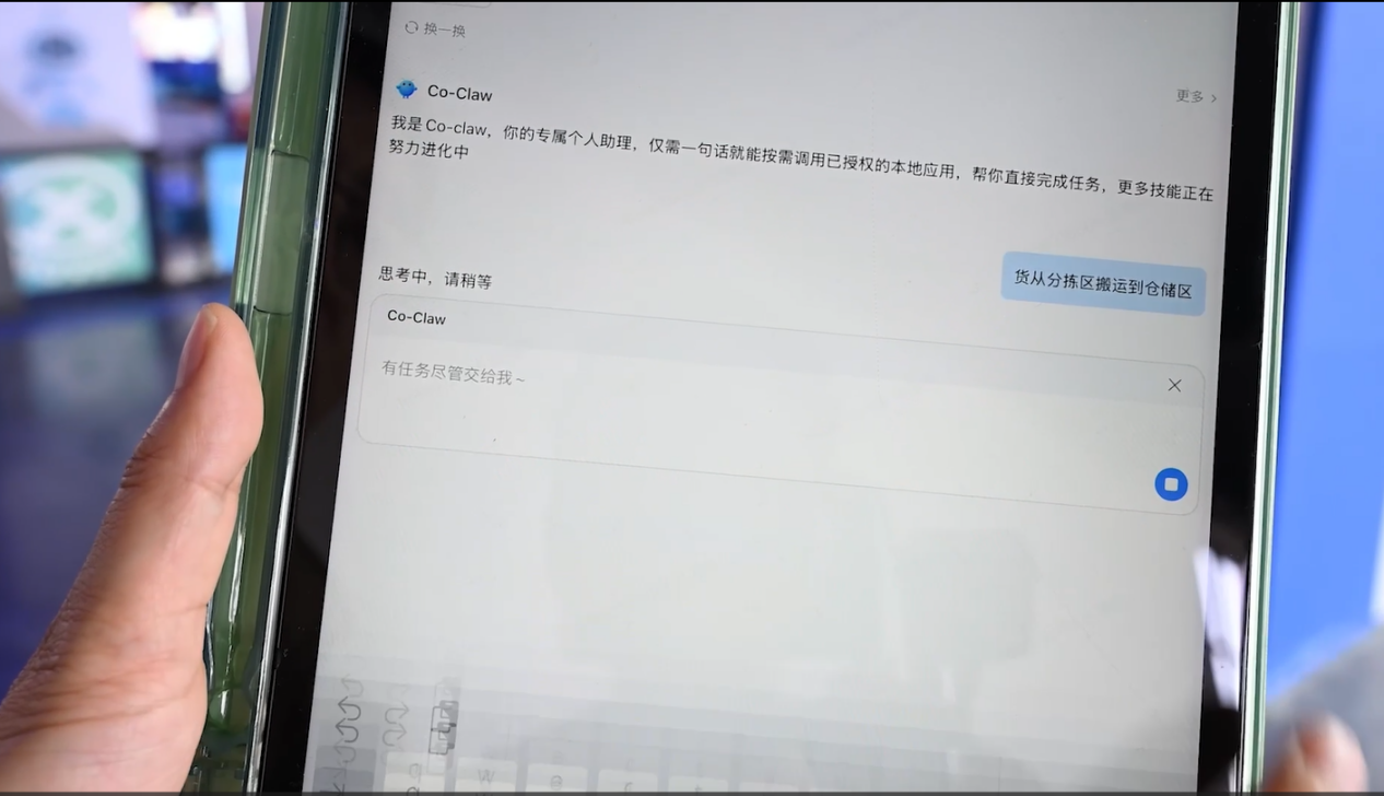 一线工人通过语音或文字指令,如"把A区的物料送到3号装配线",Co-Claw AMR即可快速拆解任务、自主规划更优路径、全程自动执行,大幅降低使用门槛。