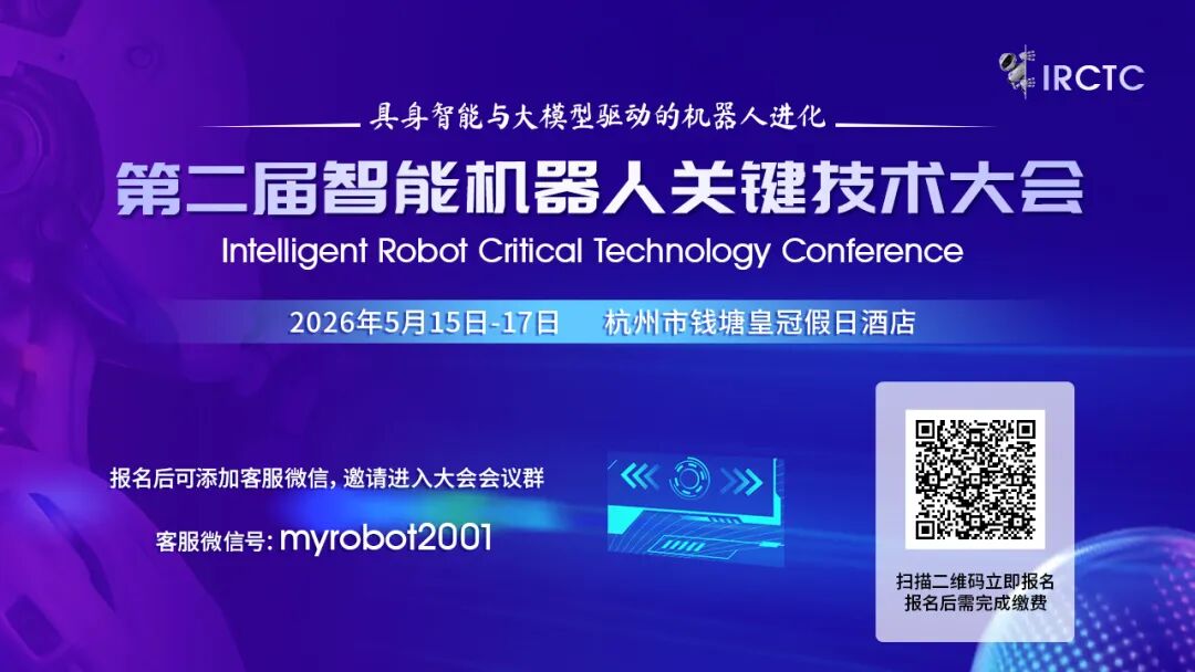时间:2026年5月15日-17日地点:中国·杭州·钱塘皇冠假日酒店 第二届智能机器人关键技术大会(IRCTC2026)将于2026年5月15日至17日在美丽的西子湖畔——浙江省杭州市召开,主题为“具身智能与大模型驱动的机器人进化”。为了持续推动我国智能机器人关键技术突破,促进产学研用深度融合,继2025年首届智能机器人关键技术大会吸引了300余位行业翘楚齐聚黑龙江齐齐哈尔,大会组委会决定于202