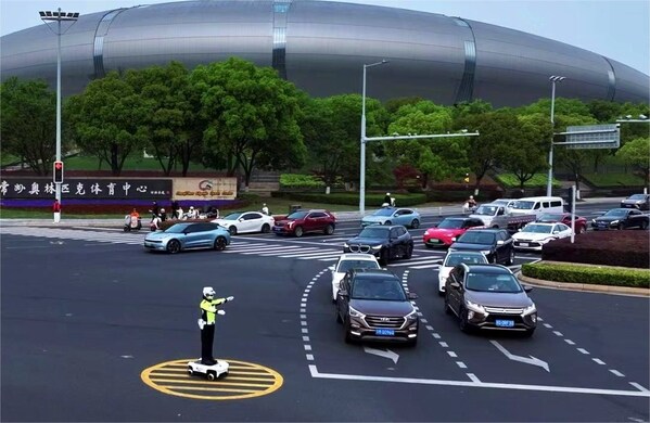 常州2026年4月12日 /美通社/ -- 4月11日,2026江苏省城市足球联赛(简称"苏超")揭幕战在常州奥体中心正式举行。随着赛事开赛,场馆周边人流与车流迅速攀升,一位特殊的"执勤交警"也出现在赛场外围——由墨甲机器人联合常州市交警部门、常州星宇股份,共同打造的交警机器人智警"常安"R050,作为"苏超"赛事保障新助手与常州交警协同开展赛事交通保障工作。 从城市交通治理到大型公共活动保障,墨