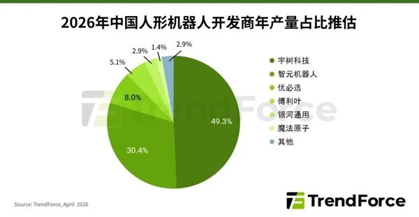 根据TrendForce集邦咨询最新人形机器人深度研究报告,2026下半年全球人形机器人产业将进入商业化的关键期。 2026年中国人形机器人产量要翻一倍还多,同比涨94%,基本接近翻倍。 而且市场格局特别集中,宇树和智元两家加起来,能包揽国内近80%的出货量,形成双寡头局面。 今年下半年是人形机器人商业化的关键节点,国内厂商都在冲量产、找落地场景,不再只盯着技术研发,而是要真的卖出去、用起来。 宇