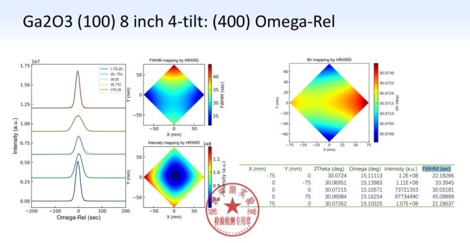 2026年3月,杭州镓仁半导体有限公司(以下简称“镓仁半导体”)的8英寸氧化镓同质外延片已通过深圳平湖实验室权威认证。检测结果表明,镓仁半导体生产的8英寸氧化镓同质外延片核心性能指标表现优异,部分参数达国际领先水平, 为氧化镓器件产业化奠定坚实基础。 权威检测:核心指标表现优异 本次检测中,平湖实验室对镓仁半导体8英寸氧化镓同质外延片选取五个关键点位进行AFM(原子力显微镜)与XRD(X射线衍射)
