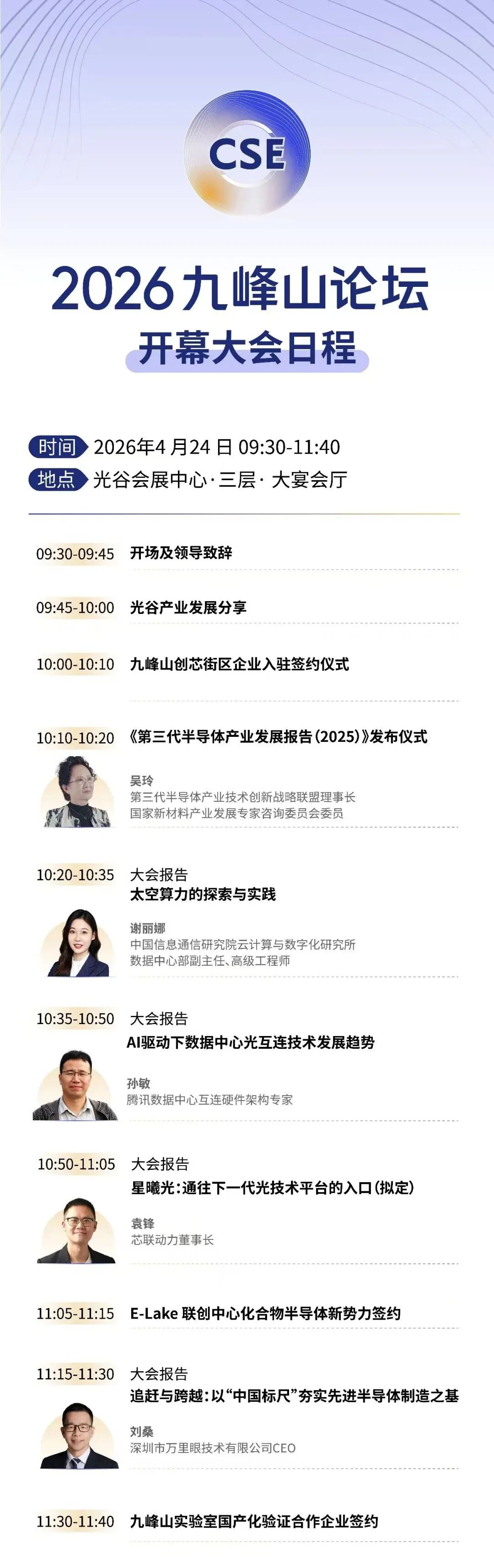 倒计时 3天!4月23-25日2026九峰山论坛即将在武汉光谷科技会展中心盛大启幕化合物半导体行业嘉年华马上开启!八大高峰论坛议程八大高峰论坛重磅登场,聚焦化合物半导体材料、微系统集成、无线连接、智能计算、Micro LED、光互连、功率电子、智慧感知与具身智能八大前沿方向,汇聚顶尖专家与产业领袖,共探技术趋势、共话产业未来!今年八大高峰论坛首次面向专业观众开放免费报名,点击以下分论坛链接查看详细