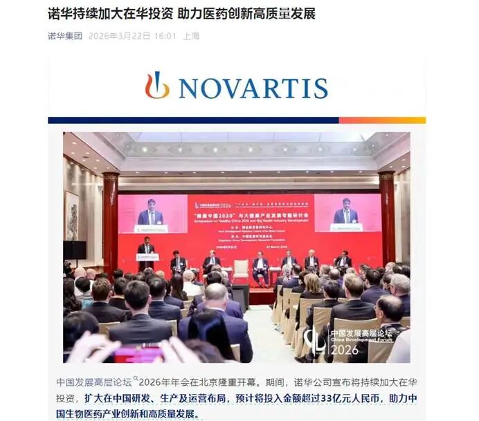 3月22日,诺华公司宣布将持续加大在华投资,扩大在中国研发、生产及运营布局,预计投入金额超过33亿元人民币。这笔投资分为两部分,约15亿元用于北京昌平工厂的扩建升级,18亿元用于上海园区二期项目建设。就在此前一周,礼来宣布未来十年累计投资30亿美元全面扩展在华供应链产能;今年1月,阿斯利康宣布计划于2030年前在中国投资逾1000亿元人民币……在逆全球化思潮涌动、地缘政治博弈加剧的背景下,诺华、阿