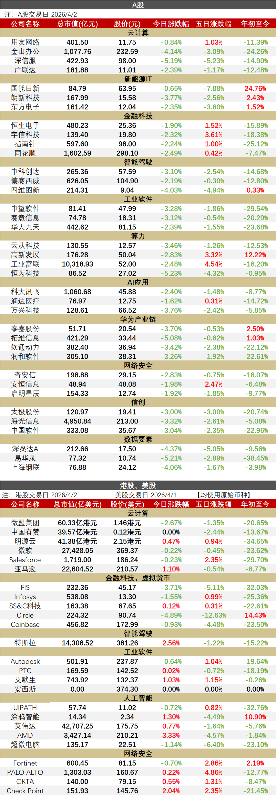 今日行情国内行业要闻► 阿里发布新一代大语言模型Qwen3.6-Plus阿里新一代大语言模型Qwen3.6-Plus正式发布。较之上一代模型,千问3.6整体性能提升明显,尤其是编程Coding能力、智能体Agent能力和工具调用能力都实现了全面跃升,同时深度适配主流Agent框架,释放模型在开放环境中完成复杂任务的新潜力。(来源:每日经济新闻)► 华为鸿蒙Harmony 6系统负一屏内测关联Cla