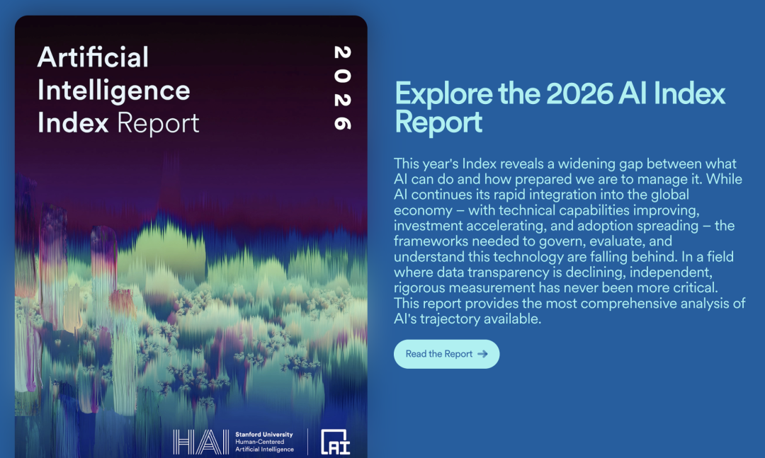 REPORT斯坦福 AI 指数报告(AI Index Report) 由斯坦福「以人为本人工智能研究院」(HAI)每年发布,追踪、整合并可视化 AI 领域的各类数据刚刚,「斯坦福 AI 指数报告 2026」发布,423 页,9 个章节与 2025 版相比,今年新增了两个独立章节:AI 与科学、AI 与医疗,同时新增了 AI 主权分析框架和生成式 AI 的消费者价值估算过去两年,我每年都会进行完整解