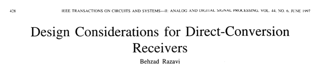 随着无线通信技术向低成本、低功耗、小尺寸方向快速发展,射频接收机架构面临着前所未有的革新需求。传统接收机架构的局限性日益凸显,而直接变频接收机(Direct-Conversion Receiver, DCR)凭借其易于单片集成、抗失配能力较强等优势,重新成为射频领域的研究热点。本文基于Behzad Razavi于1997年发表的《Design Considerations for Direct-C