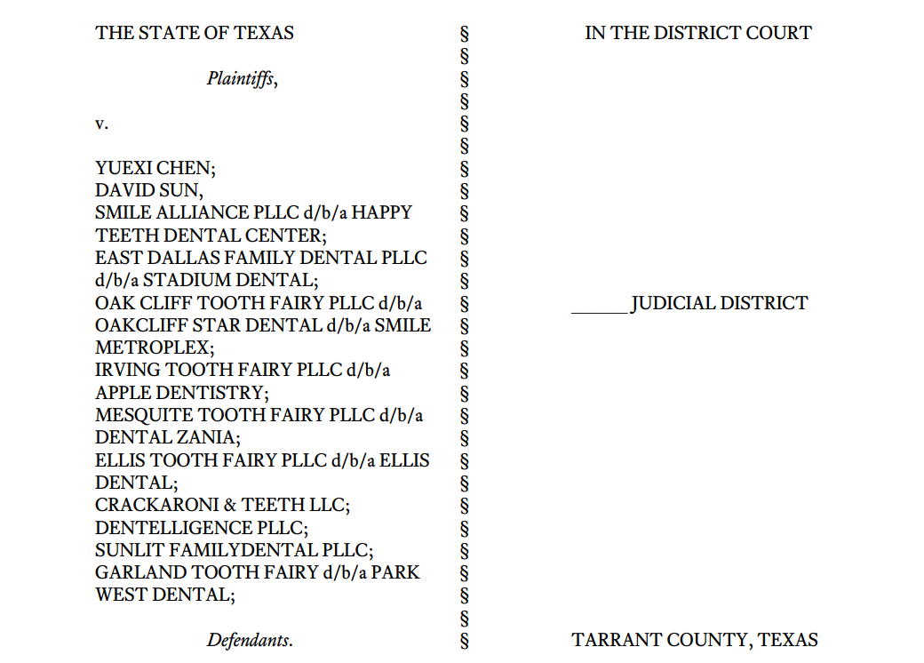 据悉,2026年3月31日,德克萨斯州检察长 Ken Paxton 就牙科诊所欺诈德克萨斯州医疗补助计划(Medicaid)一事提起诉讼,指控多名牙医及其关联诊所按患者数量向第三方支付费用,并通过现金、礼品卡等方式诱导医疗补助受益人就诊,进而提交受回扣影响的索赔。根据德克萨斯州检察长办公室(Office of the Attorney General,下称"OAG")官方公告,相关"服务提供方被告