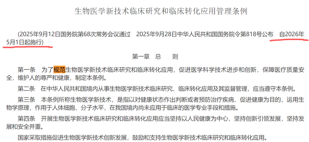 一纸“不得收费”的禁令,正在把细胞治疗行业的权力从企业手中,移交给三甲医院。2026年5月1日,国务院第818号令将正式施行。如果你只看到“规范细胞治疗”这几个字,你大概率会把它当成又一份普通的监管文件。但如果你读懂了其中的利益重构逻辑,你会发现:这不是监管,这是“权力的重新分配”。818号令做了什么?一句话说透《生物医学新技术临床研究和临床转化应用管理条例》的核心变革,可以浓缩成三句话:第一,临