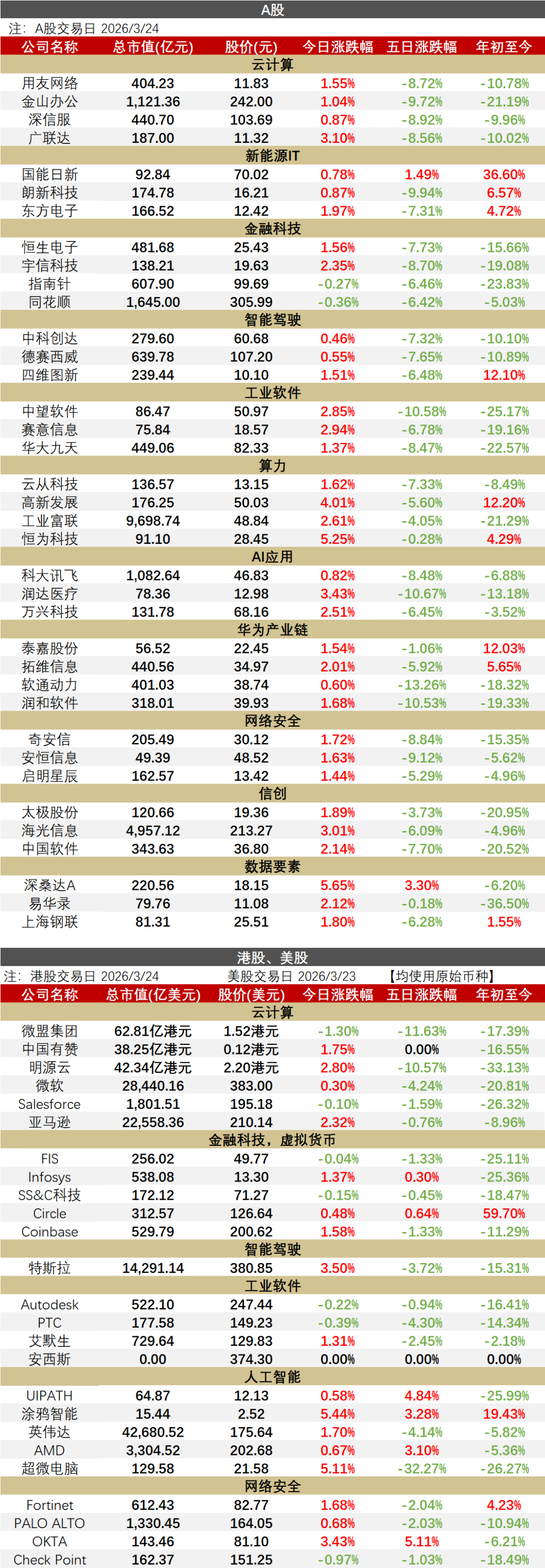 今日行情国内行业要闻► 阿里达摩院与开芯院、中科院软件所达成战略合作,共推RISC-V开源架构3月24日,在上海举行的2026玄铁RISC-V生态大会上,阿里巴巴达摩院与北京开源芯片研究院、中国科学院软件研究所签署战略合作协议,共同推进RISC-V技术创新与生态建设。 据协议,达摩院将发挥在高性能CPU研发、产业落地等领域的优势和经验,参与研发开源RISC-V CPU“香山”的下一代产品,探索SM